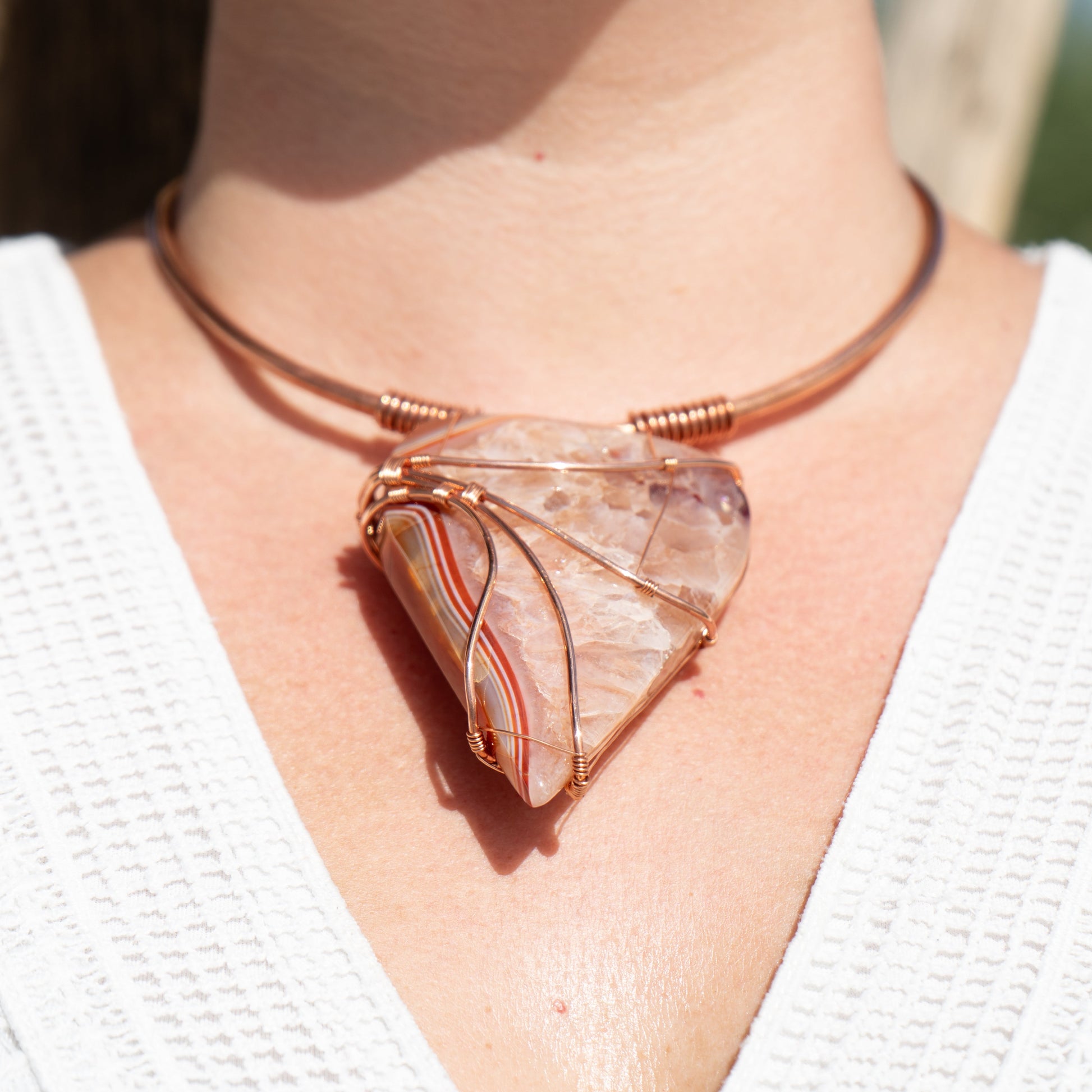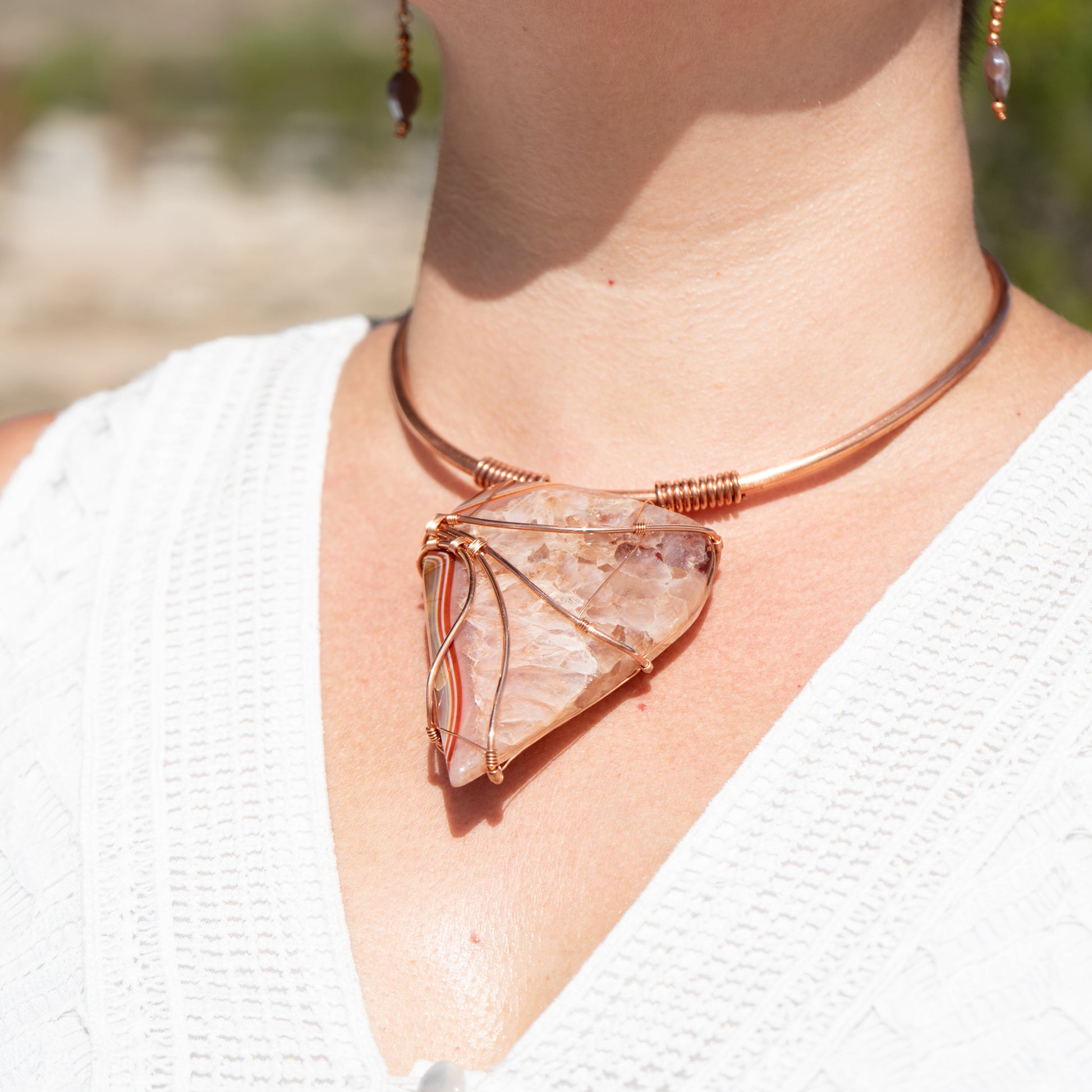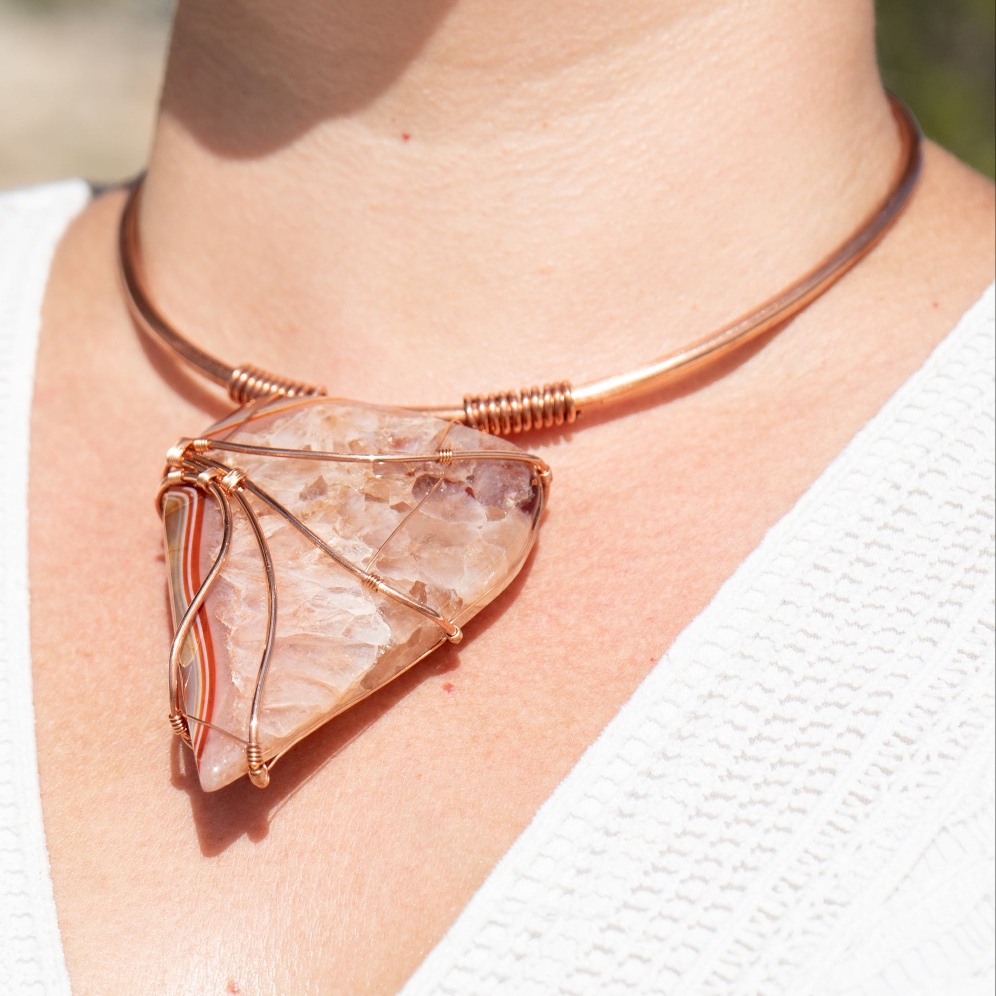 Carnelian Wrapped in Copper on Thick Copper Necklace with Handmade Closure