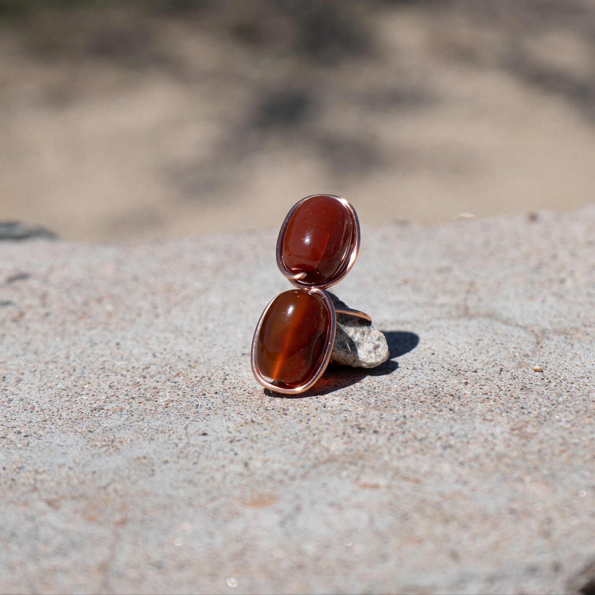 Ruby Blaze – Red Carnelian & Onyx Copper Ring