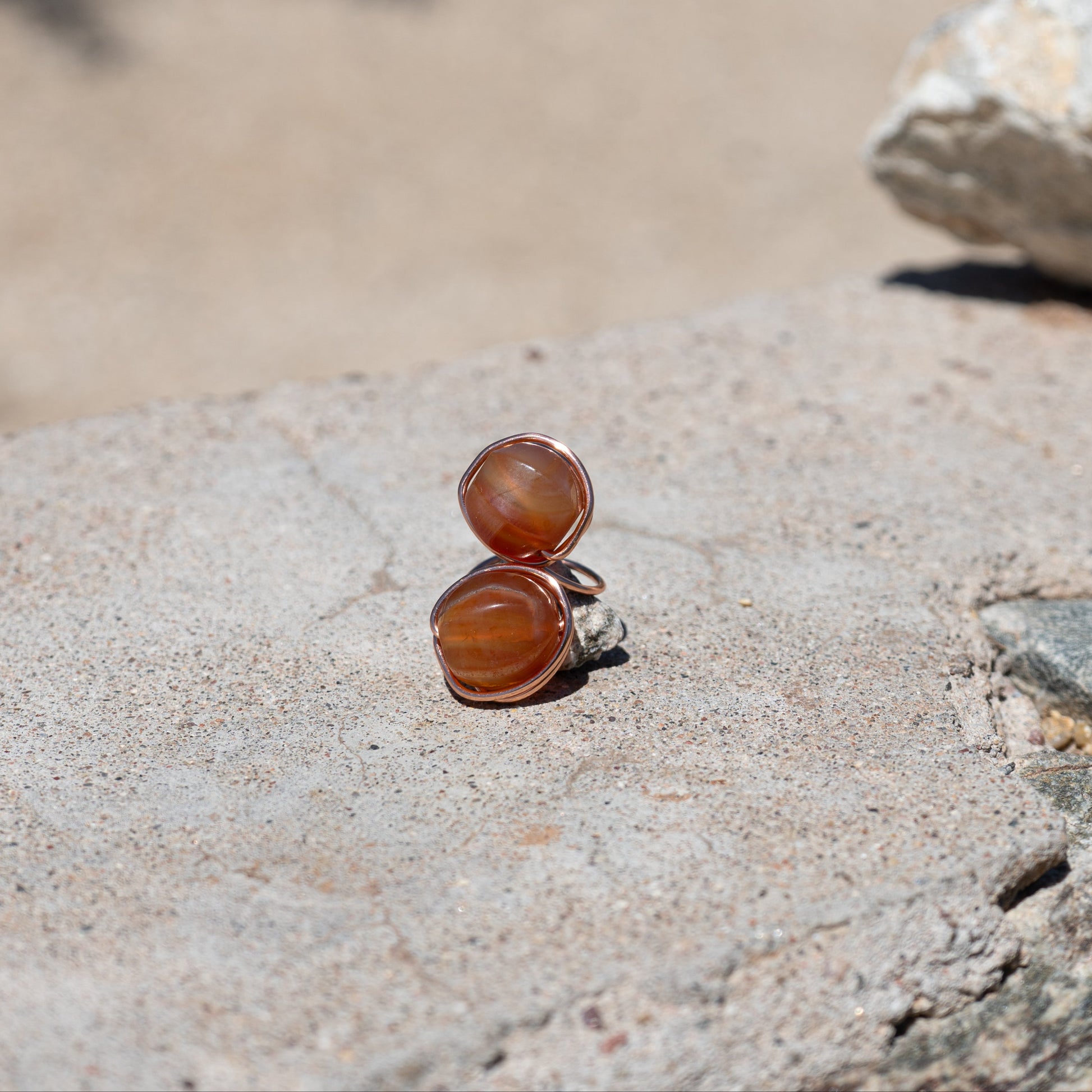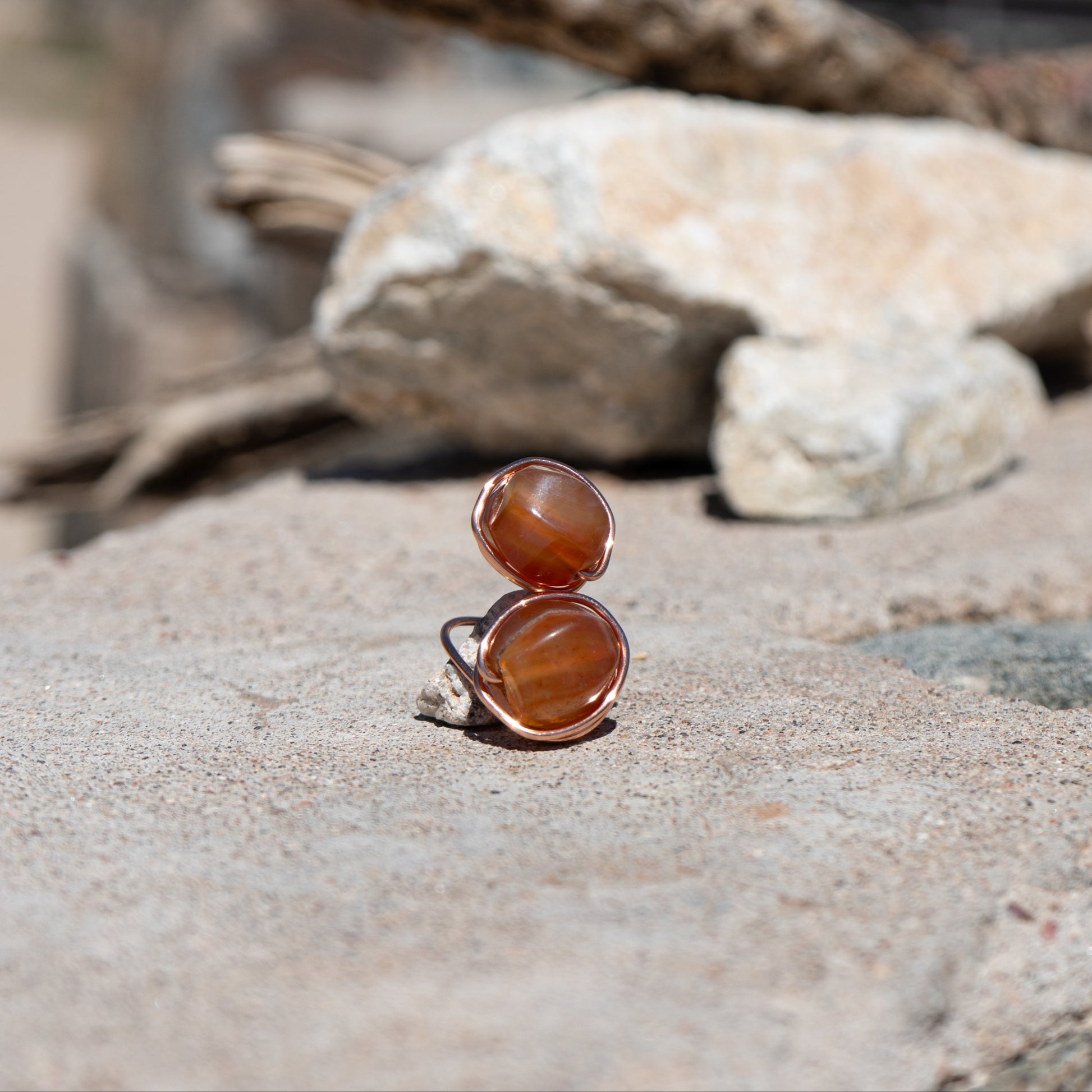A geometric take on carnelian, this hexagon ring highlights the stone’s warm energy in a sleek, modern design.