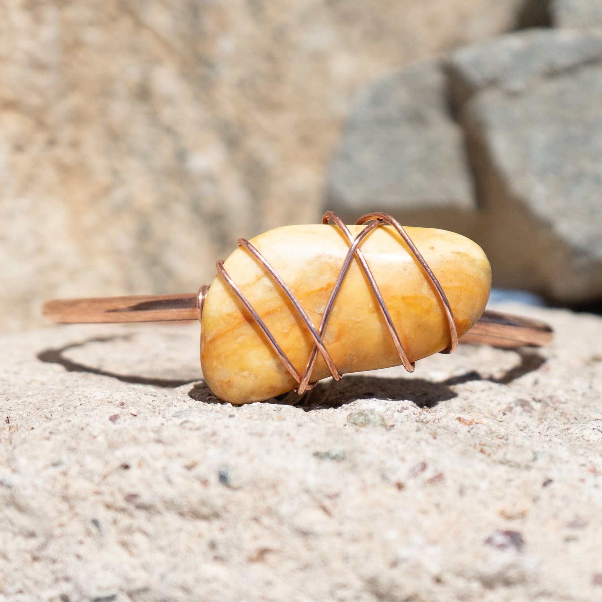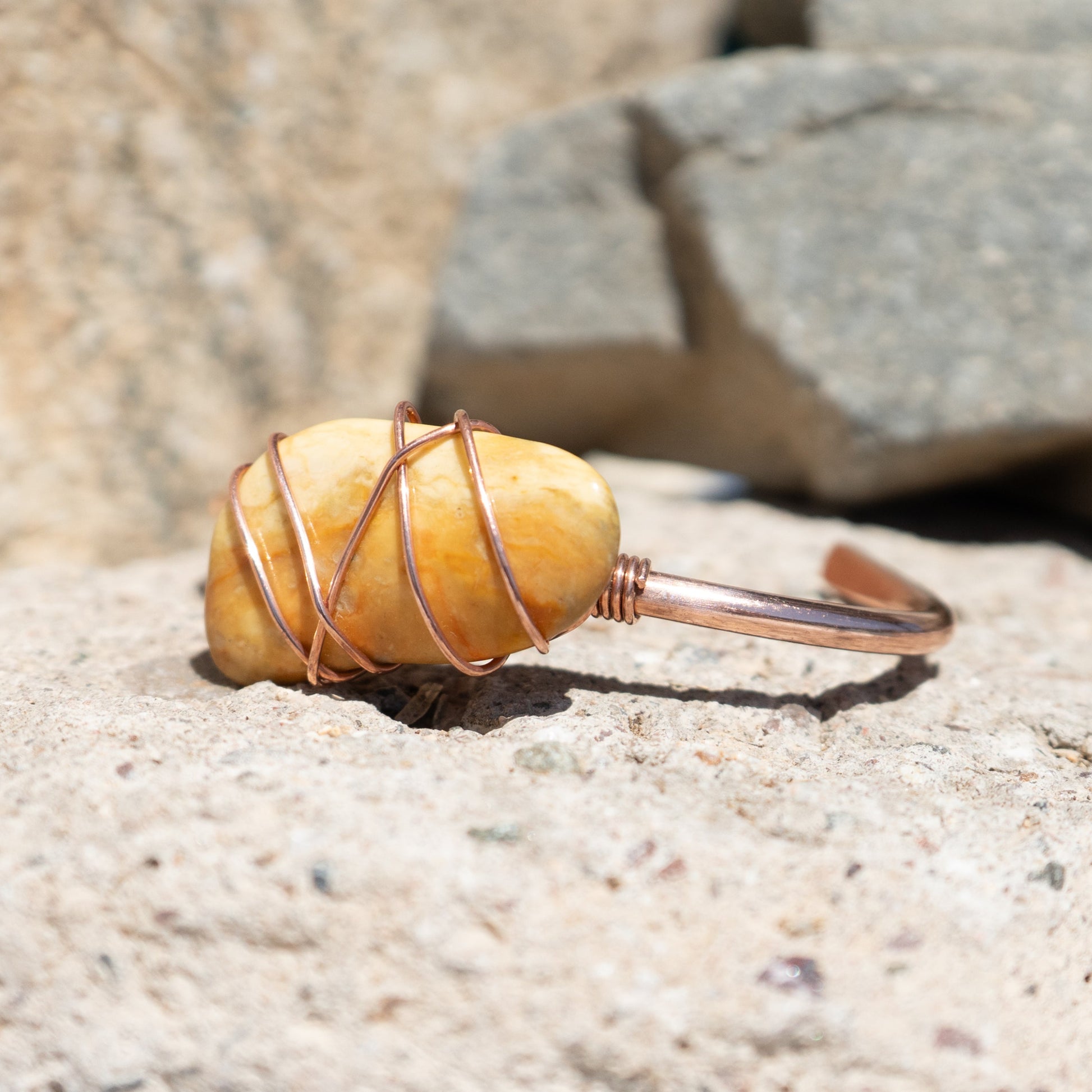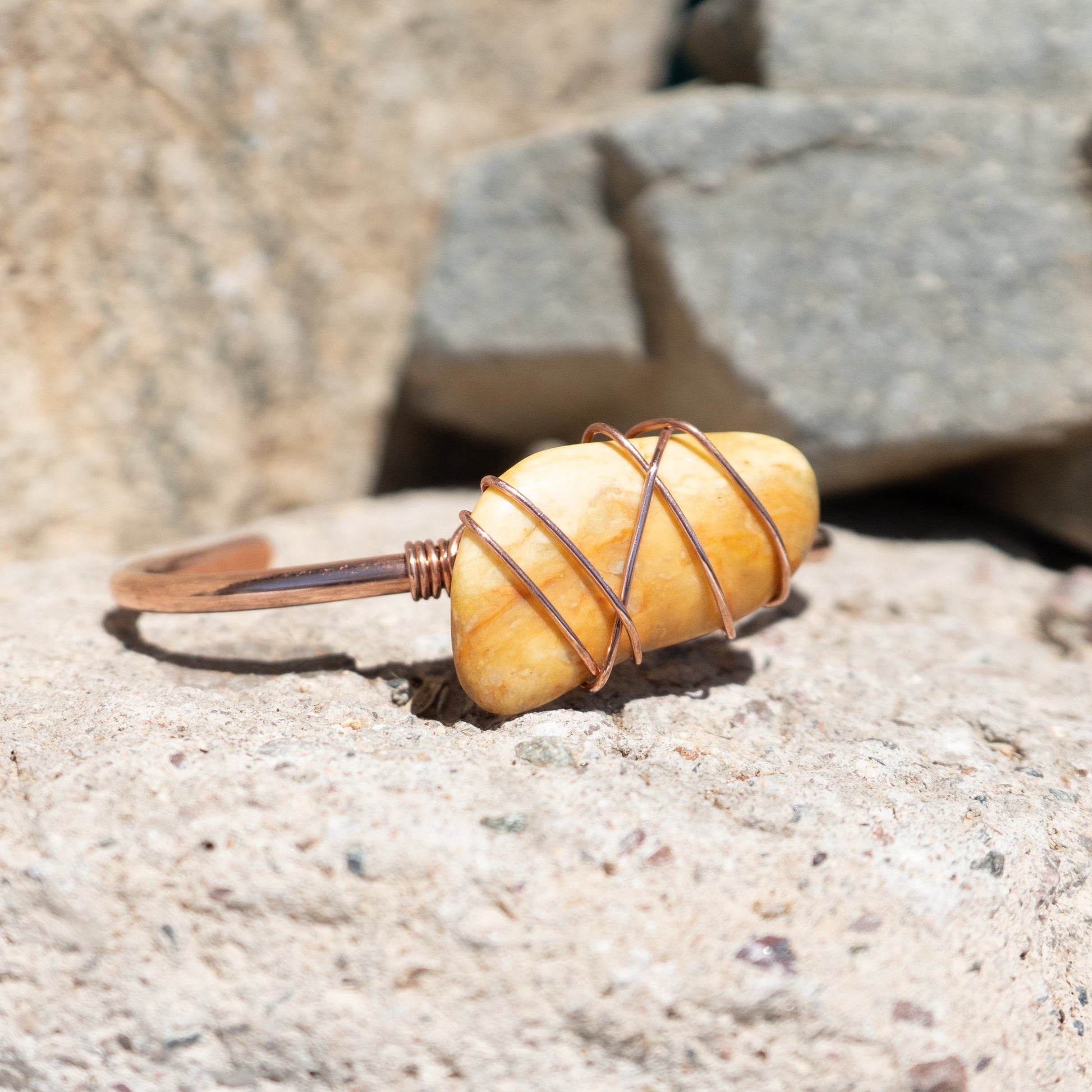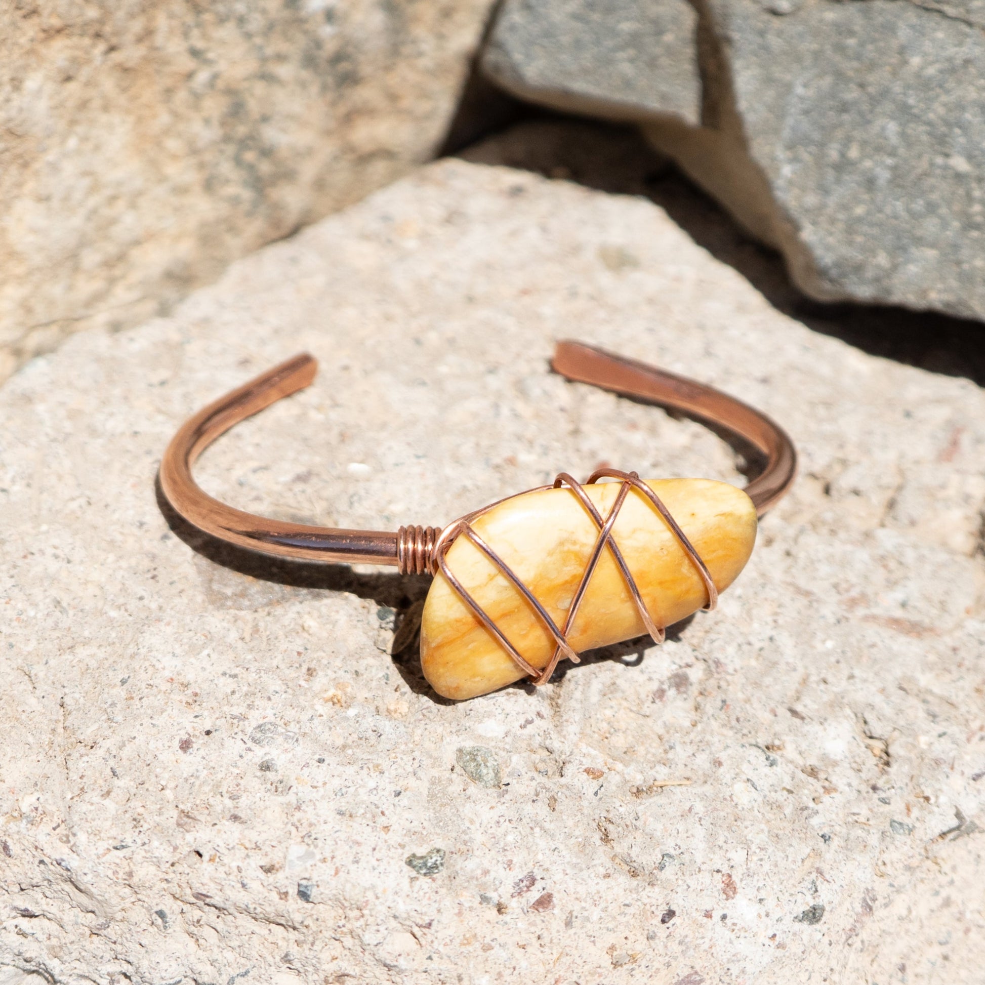 A protective copper bangle infused with yellow jasper for positivity and willpower.