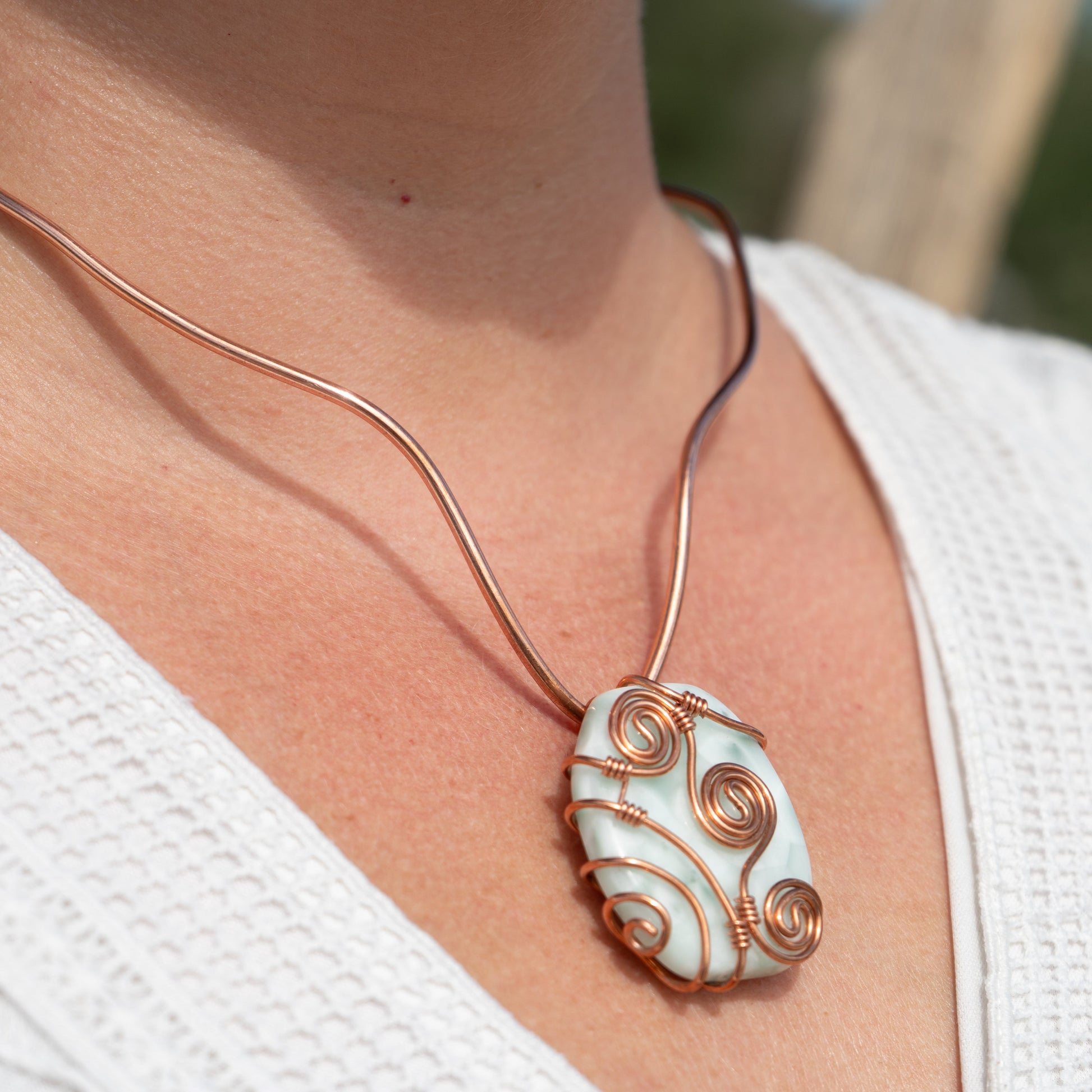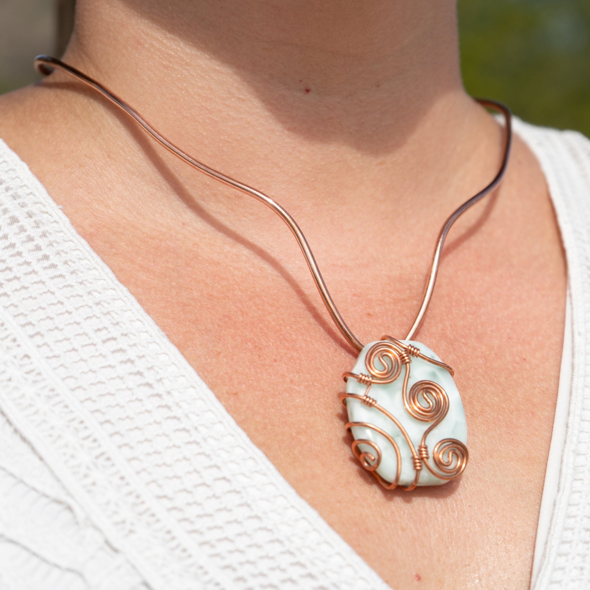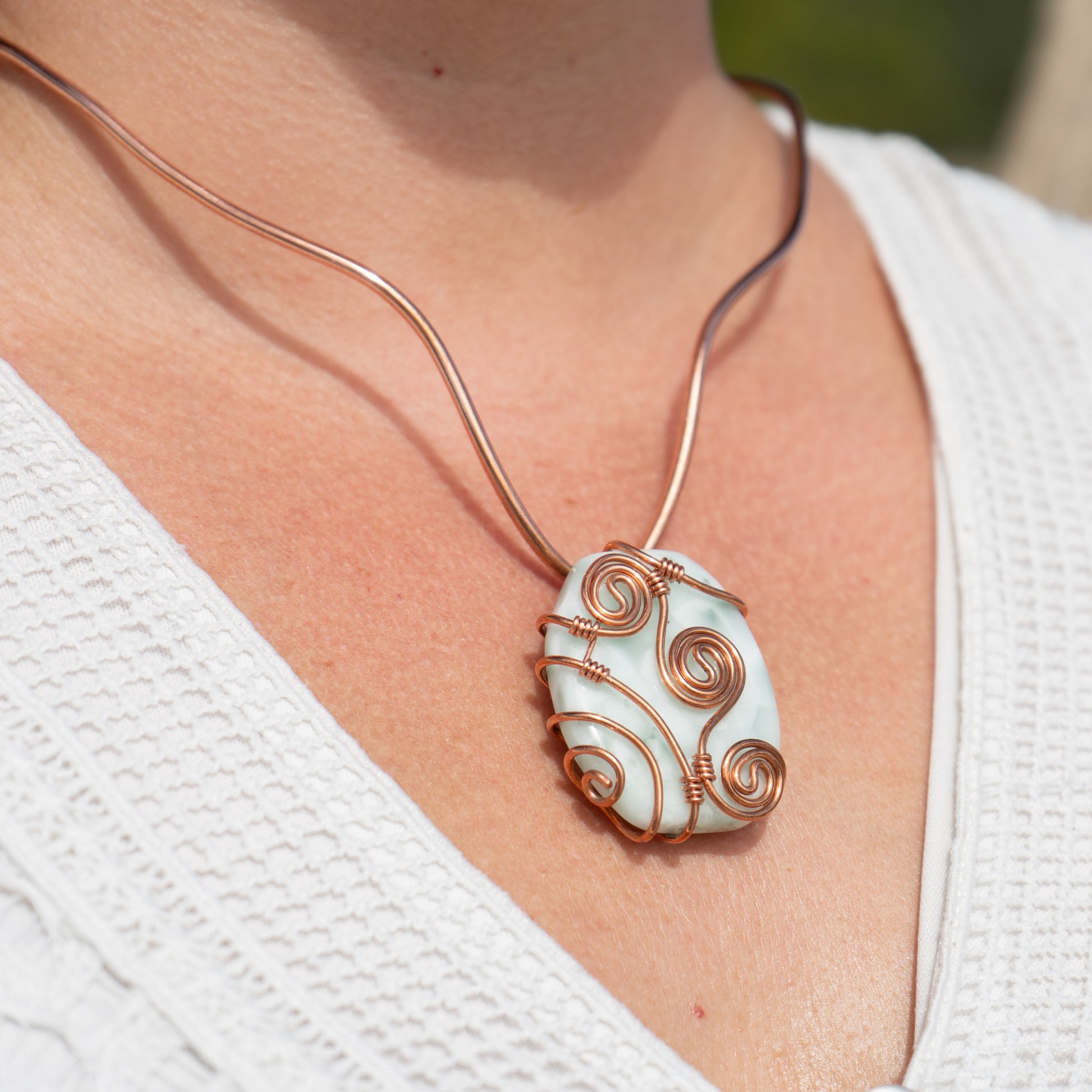 Copper-wrapped Angelite for peace, compassion, and spiritual connection.